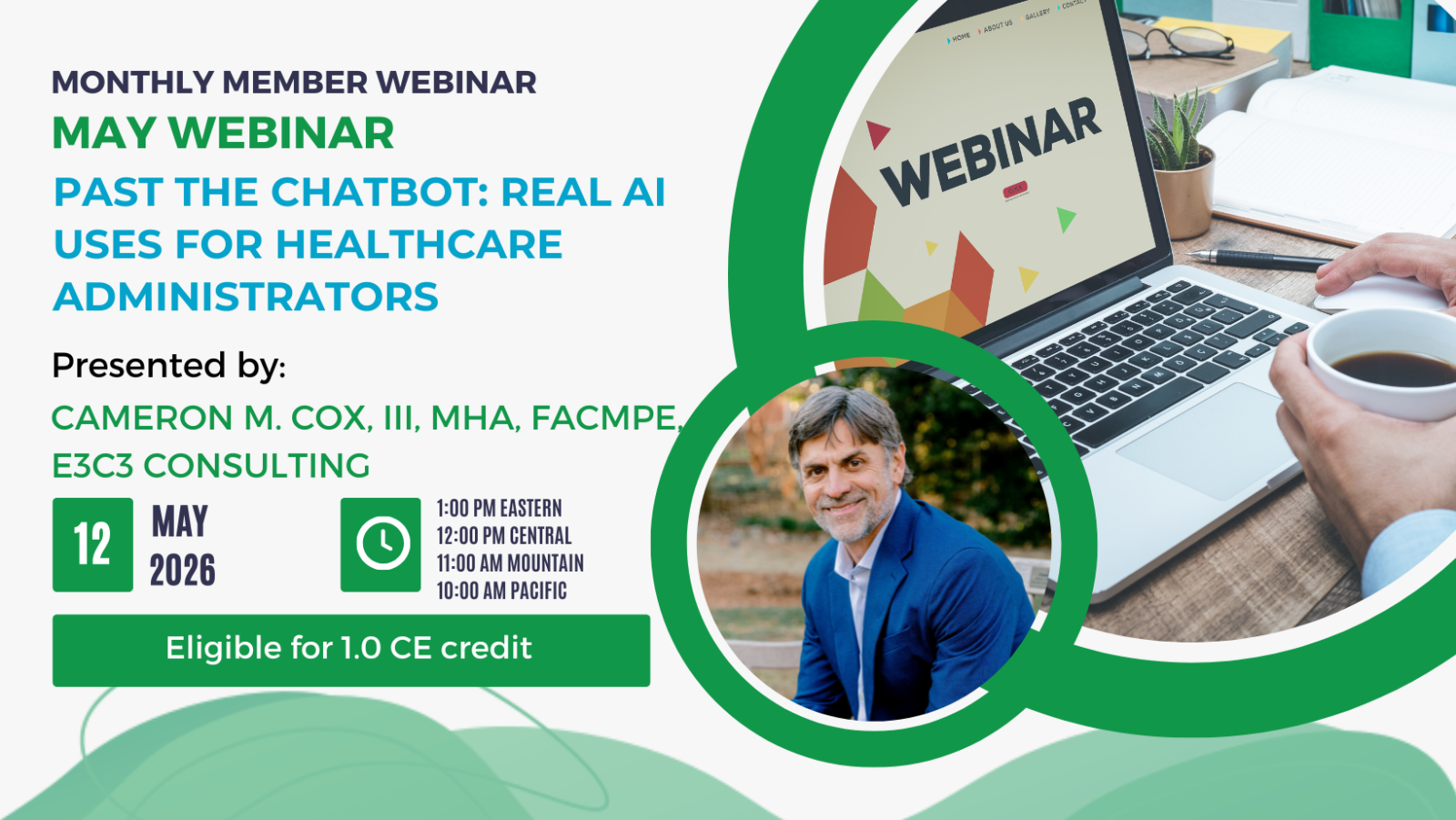 Monthly webinars provide members and their staff, education from the comfort of the office.Learn from industry experts on healthcare's hottest topics and earn CE credit. Webinars are 60-90 minutes long, offered live or on demand and live sessions include Q & A with the speakers.